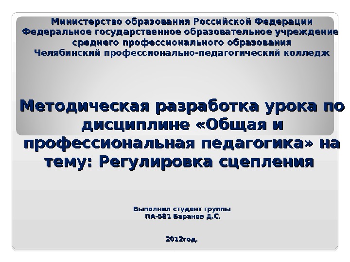 Министерство образования Российской Федерации Федеральное государственное образовательное учреждение