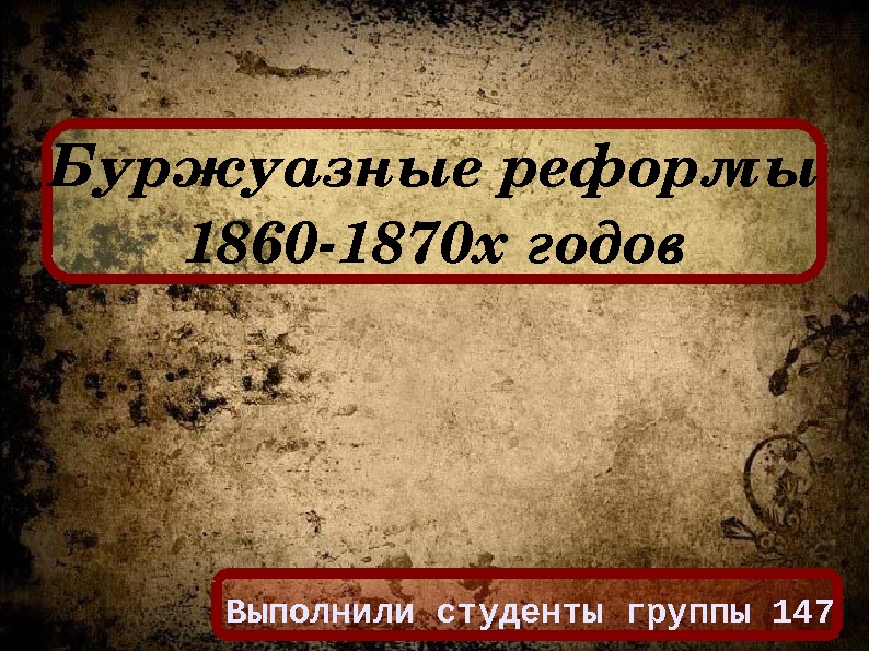 Буржуазныереформы 1860 1870 хгодов Выполнили студенты группы 147