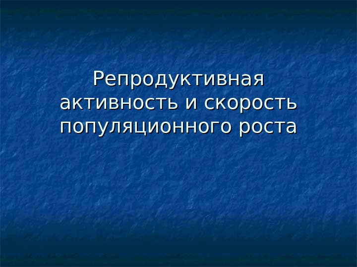 Репродуктивная активность и скорость популяционного роста Репродуктивная