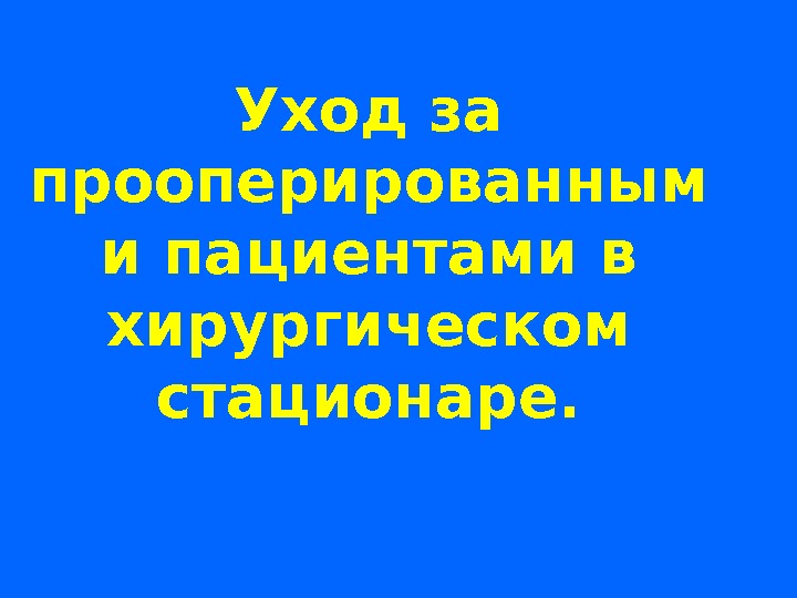 Уход за прооперированным и пациентами в хирургическом стационаре.