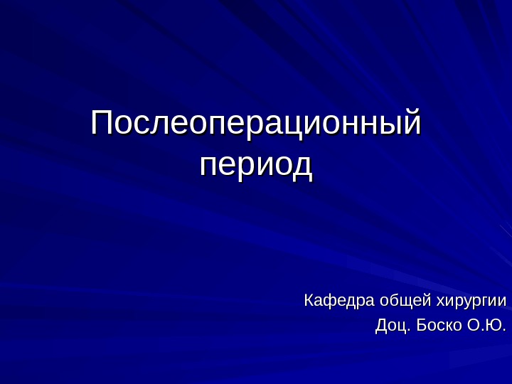 Послеоперационный период Кафедра общей хирургии Доц. Боско О.
