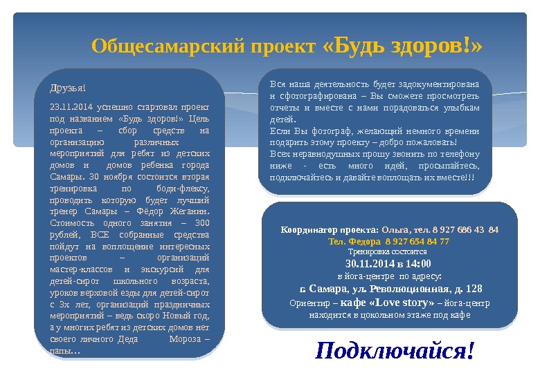 Общесамарский проект «Будь здоров!» Друзья! 23. 11.