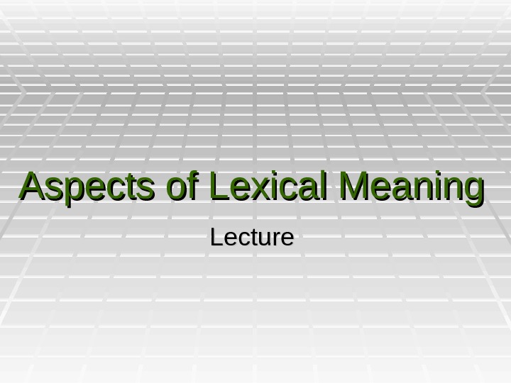 Intralinguistic Relations of Words Types of Semantic Relations