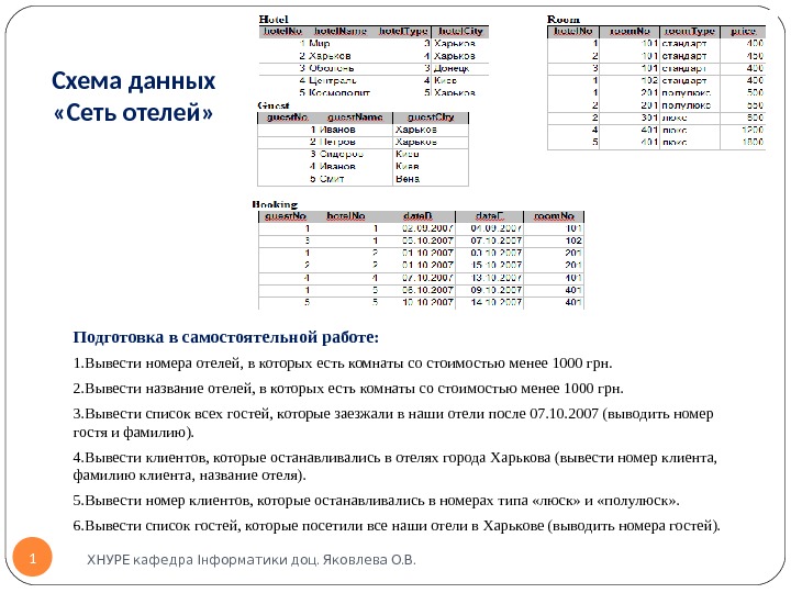 Схема данных «Сеть отелей» .