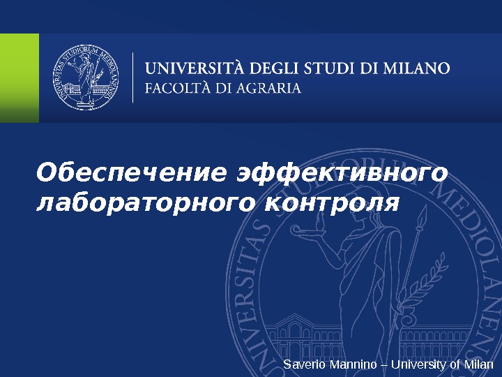 Обеспечение эффективного лабораторного контроля Saverio Mannino – University