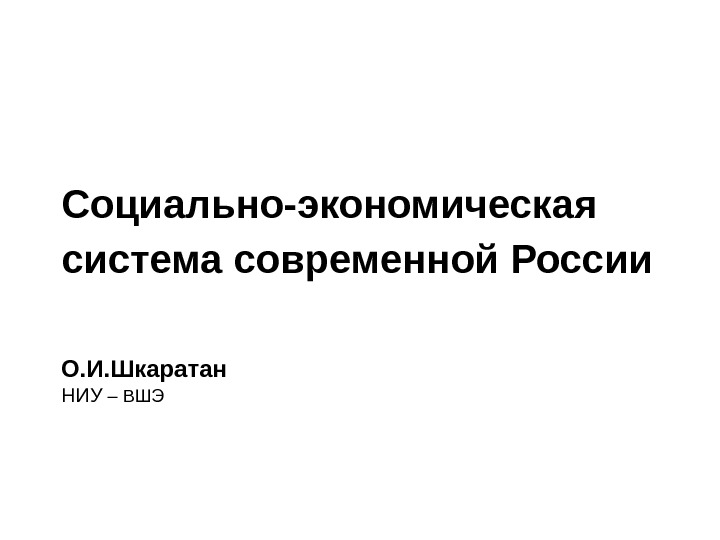 Социально-экономическая система современной России О. И. Шкаратан НИУ