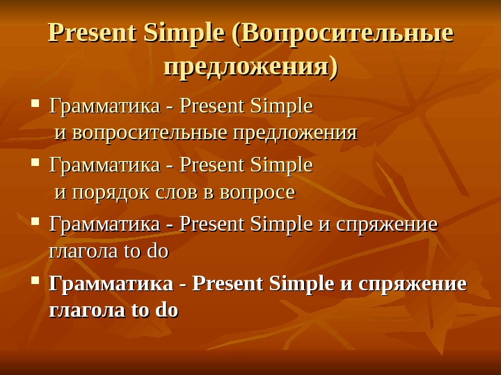 Present Simple (Вопросительные предложения) Грамматика — Present