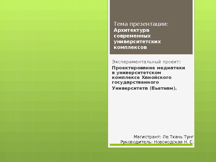 Тема презентации: Архитектура современных университетских комплексов Экспериментальный проект: