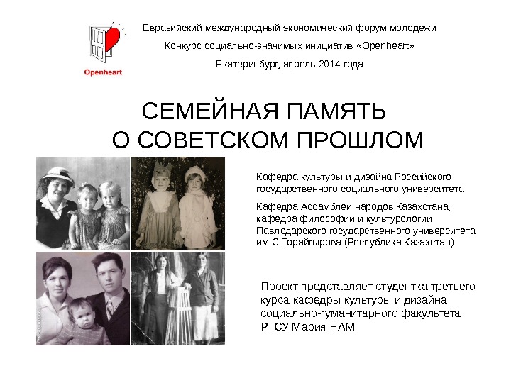 СЕМЕЙНАЯ ПАМЯТЬ О СОВЕТСКОМ ПРОШЛОМ Евразийский международный экономический