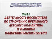ТЕМА 2 деятельность воспитателя по сплочению временного детского