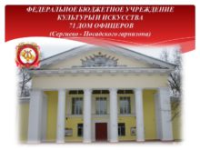 ФЕДЕРАЛЬНОЕ БЮДЖЕТНОЕ УЧРЕЖДЕНИЕ КУЛЬТУРЫ И ИСКУССТВА 71 ДОМ