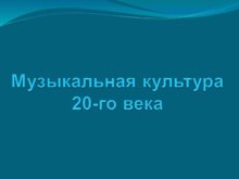 Музыкальная культура 20-го века Музыка– искусство, в котором