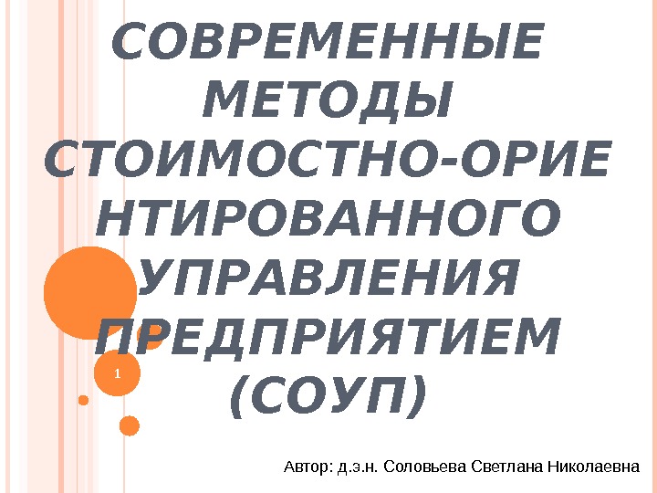 СОВРЕМЕННЫЕ МЕТОДЫ СТОИМОСТНО-ОРИЕ НТИРОВАННОГО УПРАВЛЕНИЯ ПРЕДПРИЯТИЕМ (СОУП) Автор: