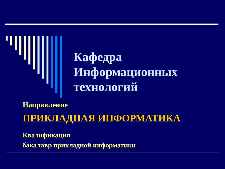 Кафедра Информационных технологий Направление ПРИКЛАДНАЯ ИНФОРМАТИКА Квалификация бакалавр
