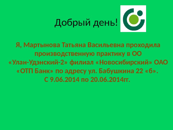 Добрый день! Я, Мартынова Татьяна Васильевна проходила производственную