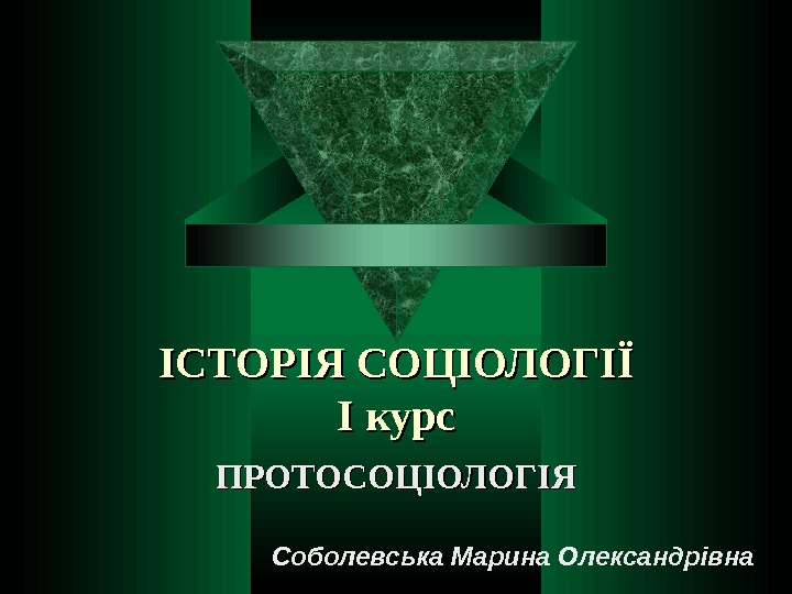 ІСТОРІЯ СОЦІОЛОГІЇ І курс ПРОТОСОЦІОЛОГІЯ Соболевська Марина Олександрівна