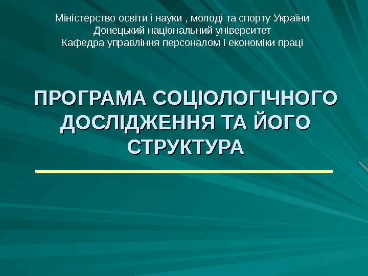 ПРОГРАМА СОЦІОЛОГІЧНОГО ДОСЛІДЖЕННЯ ТА ЙОГО СТРУКТУРАМ іністерство освіти
