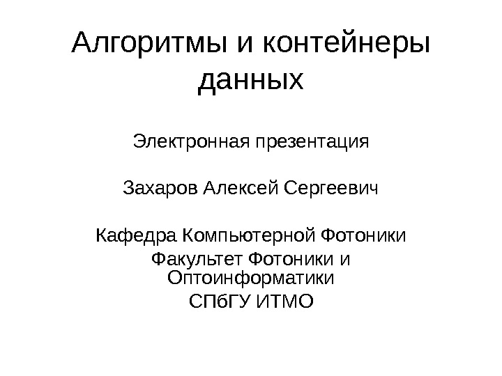 Алгоритмы и контейнеры данных Электронная презентация Захаров Алексей