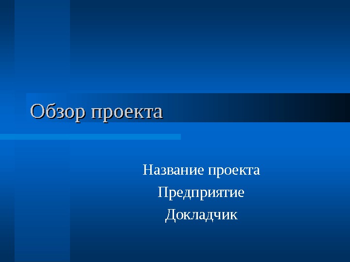 Обзор проекта Название проекта Предприятие Докладчик Цели