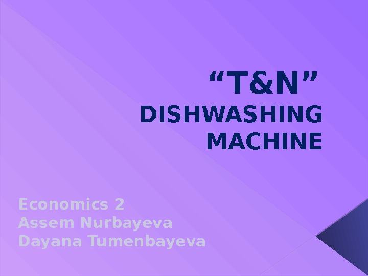 “ T&N” DISHWASHING MACHINE Economics 2 Assem Nurbayeva