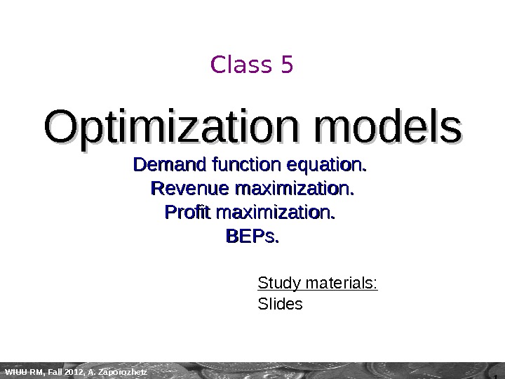 1 WIUU RM, Fall 2012, A. Zaporozhetz Class
