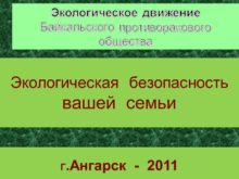 Экологическая безопасность вашей семьи Г.Ангарск — 2011 Экологическое