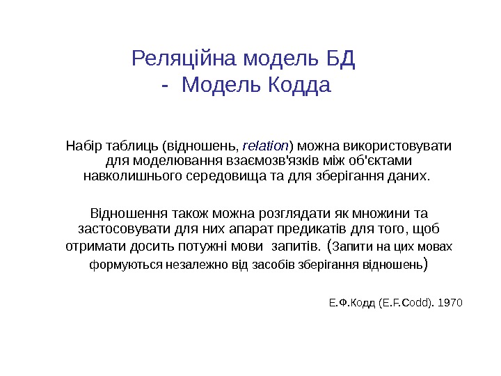 Реляційна модель БД — Модель Кодда Набір таблиць