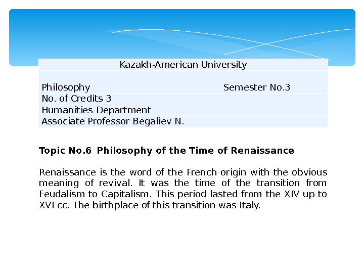 Kazakh-American University Philosophy Semester No. 3 No. of