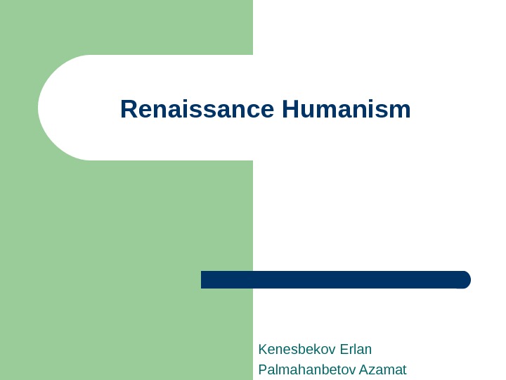 Renaissance Humanism Kenesbekov Erlan Palmahanbetov Azamat Humanism