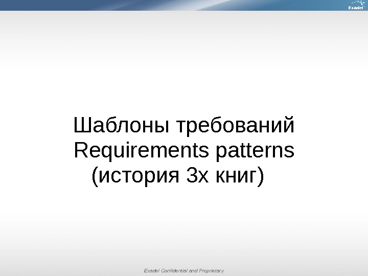 Exadel Confidential and Proprietary. Шаблоны требований Requirements