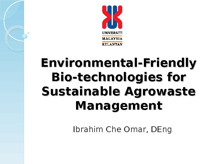 Environmental-Friendly Bio-technologies for Sustainable Agrowaste Management Ibrahim Che