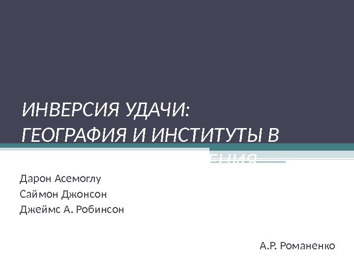 ИНВЕРСИЯ УДАЧИ: ГЕОГРАФИЯ И ИНСТИТУТЫ В ПРОЦЕССЕ СТАНОВЛЕНИЯ