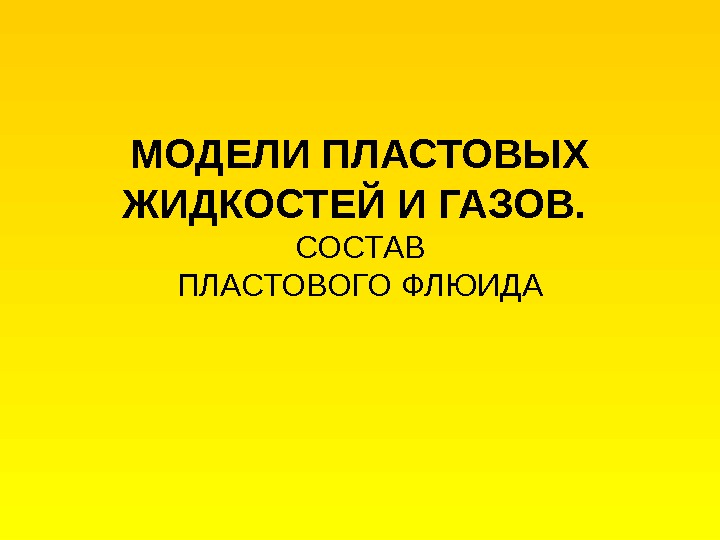 МОДЕЛИ ПЛАСТОВЫХ ЖИДКОСТЕЙ И ГАЗОВ. СОСТАВ ПЛАСТОВОГО