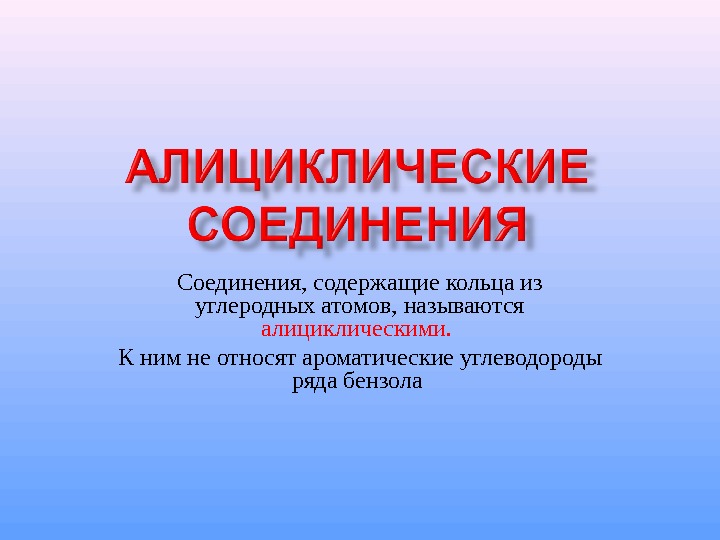 Соединения, содержащие кольца из углеродных атомов, называются алициклическими.