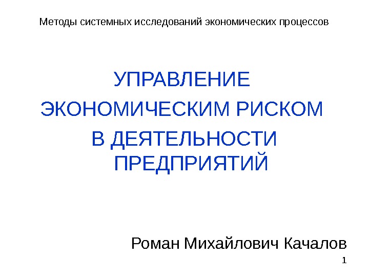 1 Методы системных исследований экономических процессов УПРАВЛЕНИЕ ЭКОНОМИЧЕСКИМ