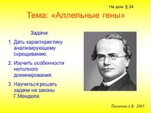 Тема: «Аллельные гены» Задачи: Дать характеристику анализирующему скрещиванию.