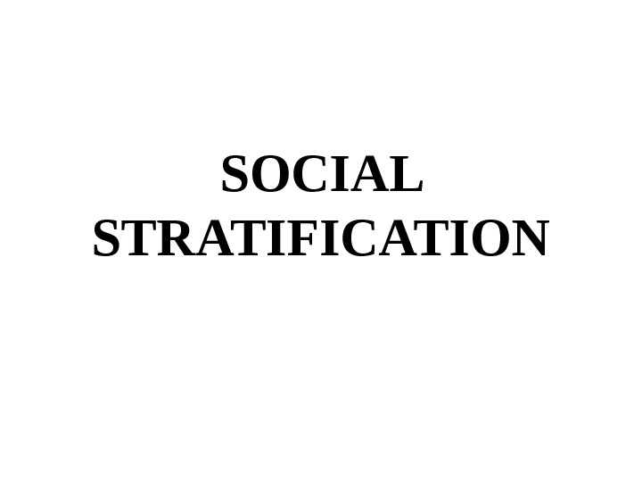 SOCIAL STRATIFICATION SOCIAL STARTIFICATION – GENERAL DEFINITION