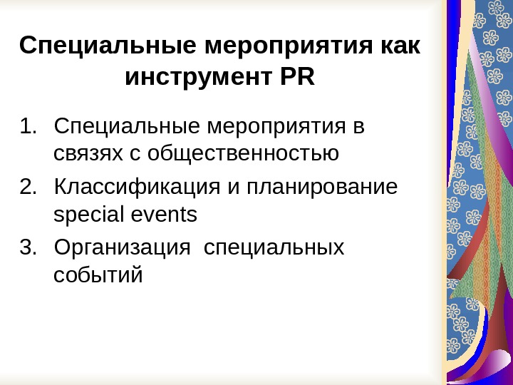 Специальные мероприятия как инструмент PR 1. Специальные мероприятия