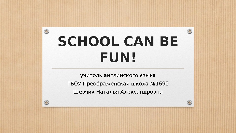 SCHOOL CAN BE FUN! учитель английского языка ГБОУ