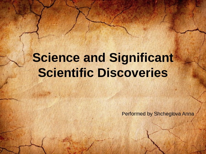Science and Significant Scientific Discoveries Performed by Shcheglova