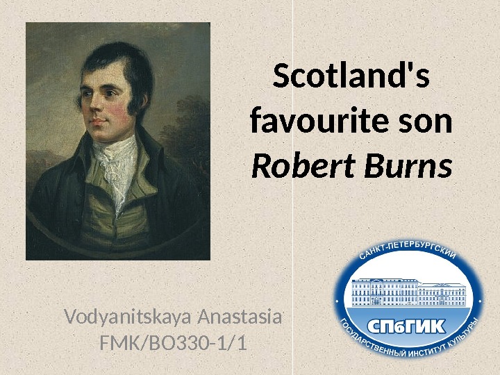 Scotland’s favourite son Robert Burns Vodyanitskaya Anastasia