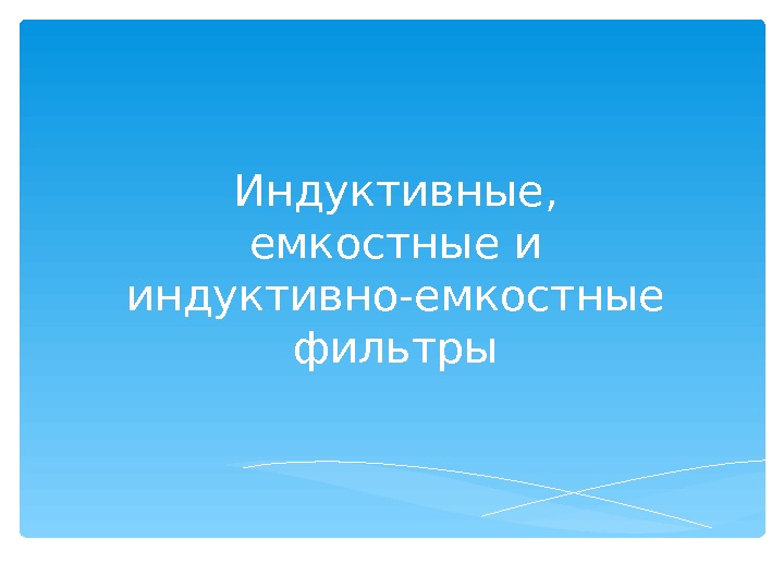 Индуктивные, емкостные и индуктивно-емкостные фильтры