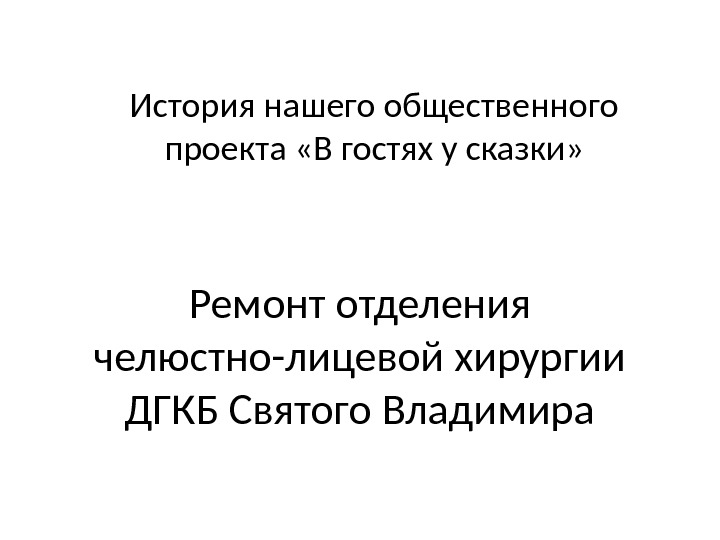 Ремонт отделения челюстно-лицевой хирургии ДГКБ Святого Владимира История