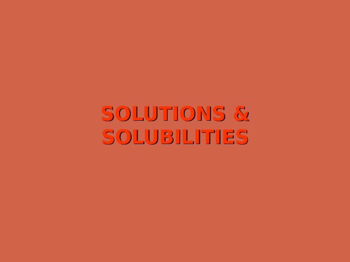 SOLUTIONS & SOLUBILITIES SOLUTION AND SOLUBILITIES 22