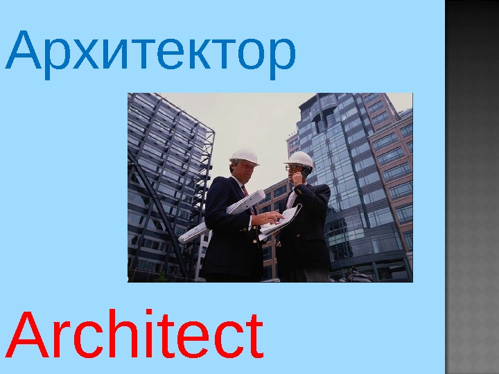 Architect Архитектор Chef. Шеф-повар Estate agent.