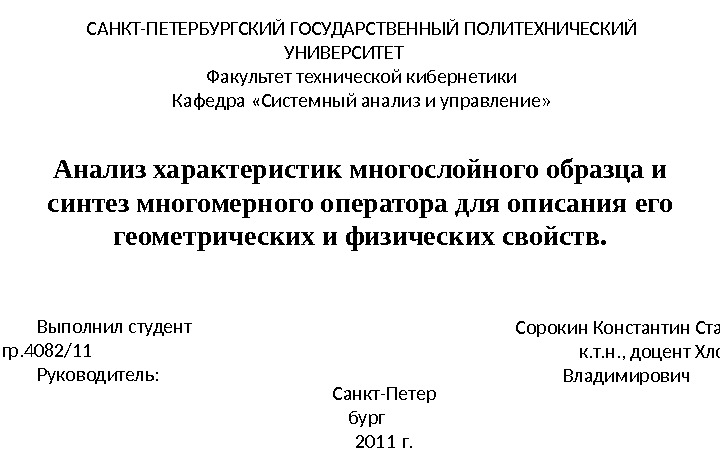 Анализ характеристик многослойного образца и синтез многомерного оператора