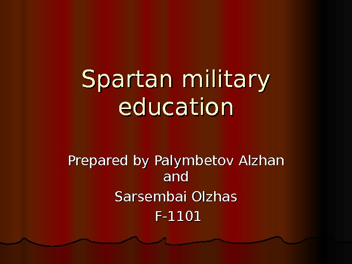 Spartan military education Prepared by Palymbetov Alzhan andand
