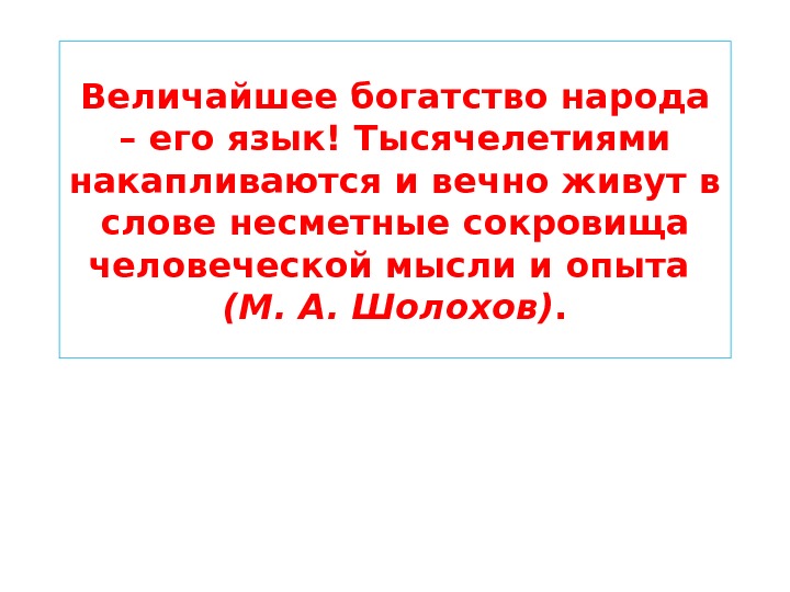 Величайшее богатство народа – его язык! Тысячелетиями накапливаются