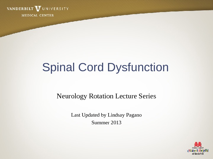 Spinal Cord Dysfunction Neurology Rotation Lecture Series Last
