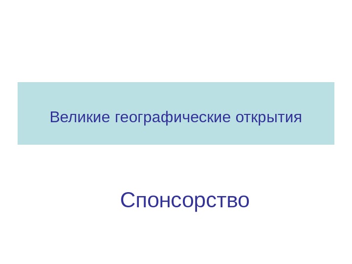 Спонсорство. Великие географические открытия Когда-то давно цивилизация
